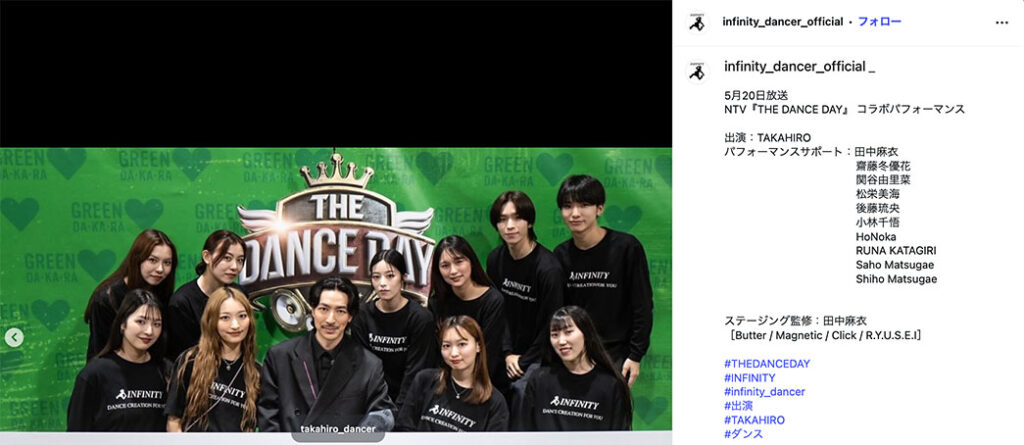 彼が所属していた「INFINITY(インフィニティ)」は「それスノ」で活躍している世界的ダンサー・振付師のTAKAHIRO(上野隆博)さんが主宰するプロのダンスエージェンシーです。