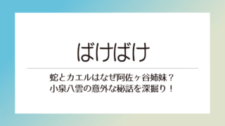 2025秋ドラマ 【ばけばけ】蛇とカエルはなぜ阿佐ヶ谷姉妹?小泉八雲の意外な秘話を深掘り! 朝ドラ『ばけばけ』の始まりは、なんとも不思議な蛇とカエルの語り。この2匹に阿佐ヶ谷姉妹が声を当てていると知り、「なぜこのコンビ?」「どういう意味があるの?」と気になった人も多いはず。実はその由来には、小泉八雲の心温まる意外なエピソードと、日... 2025.09.29 2025秋ドラマ