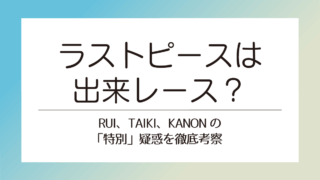オーディション ラストピースは出来レース? RUI、TAIKI、KANONの「特別」疑惑を徹底考察 巷で囁かれるラストピース『出来レース』疑惑。結論から言うと、それはBMSGの壮大な戦略の一部です。 しかし、なぜ私たちは「この3人は最初から有利なのでは」と感じてしまうのでしょうか?その違和感の正体は、RUI、TAIKI、KANONの過去の... 2025.09.20 オーディション