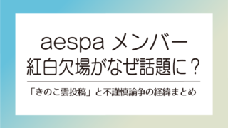 未分類aespaメンバー紅白欠場がなぜ話題に?「きのこ雲投稿」と不謹慎論争の経緯まとめ 2025年のNHK紅白歌合戦に初出場予定だった韓国のガールズグループaespa(エスパ)を巡り、メンバーの欠場が大きな話題となっています。 欠場理由は「体調不良」と公式に発表されていますが、その背景では、過去のSNS投稿をきっかけにした議論...2025.12.31未分類