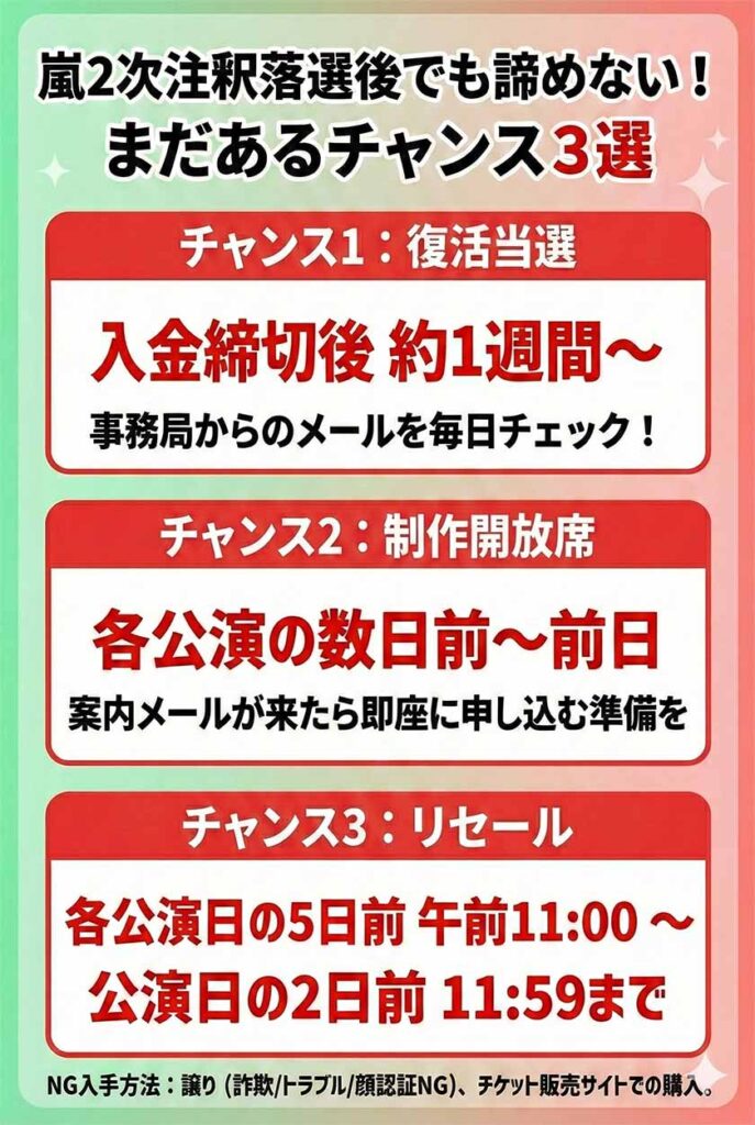 「We are ARASHI」2次注釈でも落選してしまった場合でも、まだ諦める必要はありません。