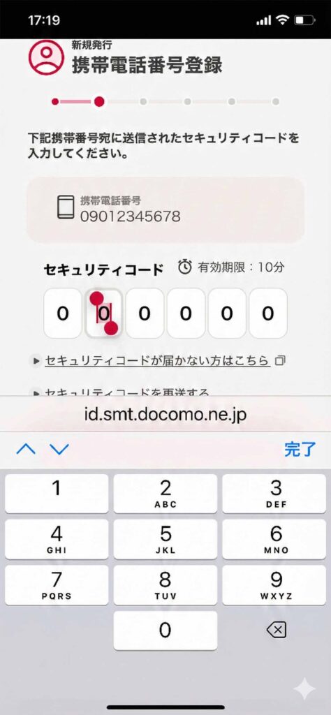 2️⃣ スマホのSMS(ショートメール)に届いた6桁の認証コードを入力する