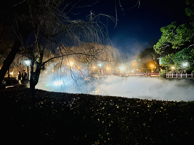 2023年位はスモークを焚いて幻想的な雲海を演出するライトアップがあり好評でした。