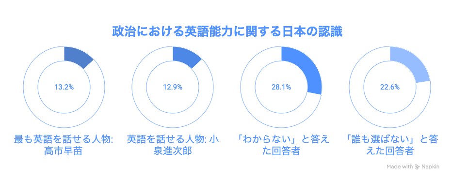世論調査やアンケートでは、高市氏は「英語が話せるイメージがある政治家」として一定の認知度があります。